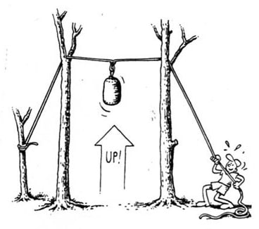 - Lower the weighted object to the ground, untie it from the rope, and secure the end of the rope to the tree or a nearby tree.