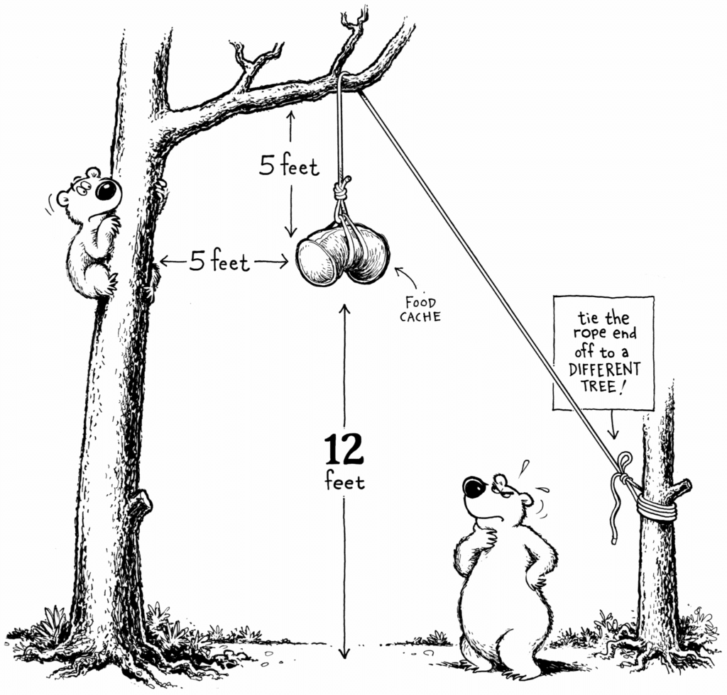 You can choose from several different bear hang techniques. Here’s the basic One-Tree Method:
